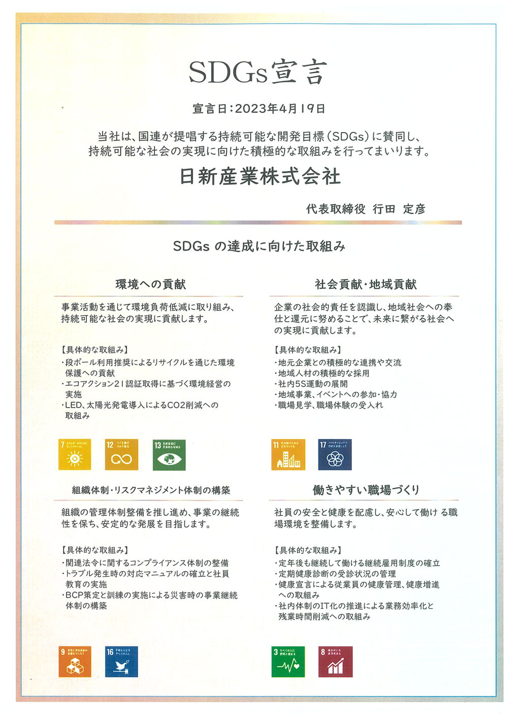 安心して暮らせる未来のために、日新産業はエコロジー素材を生かして事業活動を行っております。